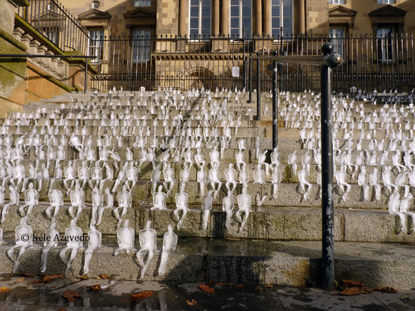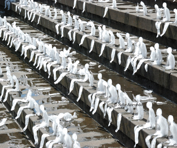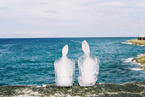 Enquanto as pessoas caminham pela rua, pequenas esculturas de gelo que recriam o formato de homens e mulheres anônimos derretem sobre alguns dos principais pontos turísticos da cidade. Ao se desfazerem em pequenas poças d’água, as figuras produzidas por Néle Azevedo provam que a arte não precisa ser imponente ou permanente para passar belas mensagens.